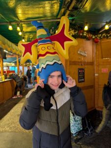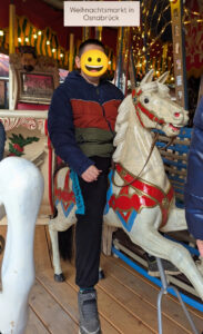 Zusammen mit den Schüler*innen der Klasse 7d besuchte Meilinda den Weihnachtsmarkt in Osnabrück. Dort durfte sie mit dem Riesenrad fahren und die mega Aussicht genießen. Außerdem konnte sie Pizza und Pommes essen! Meilinda war danach sehr kaputt, da der Fußweg sehr lang und anstrengend war. Zum Glück wurde sie auch zwischendurch getragen! Es war ein schöner Ausflug!