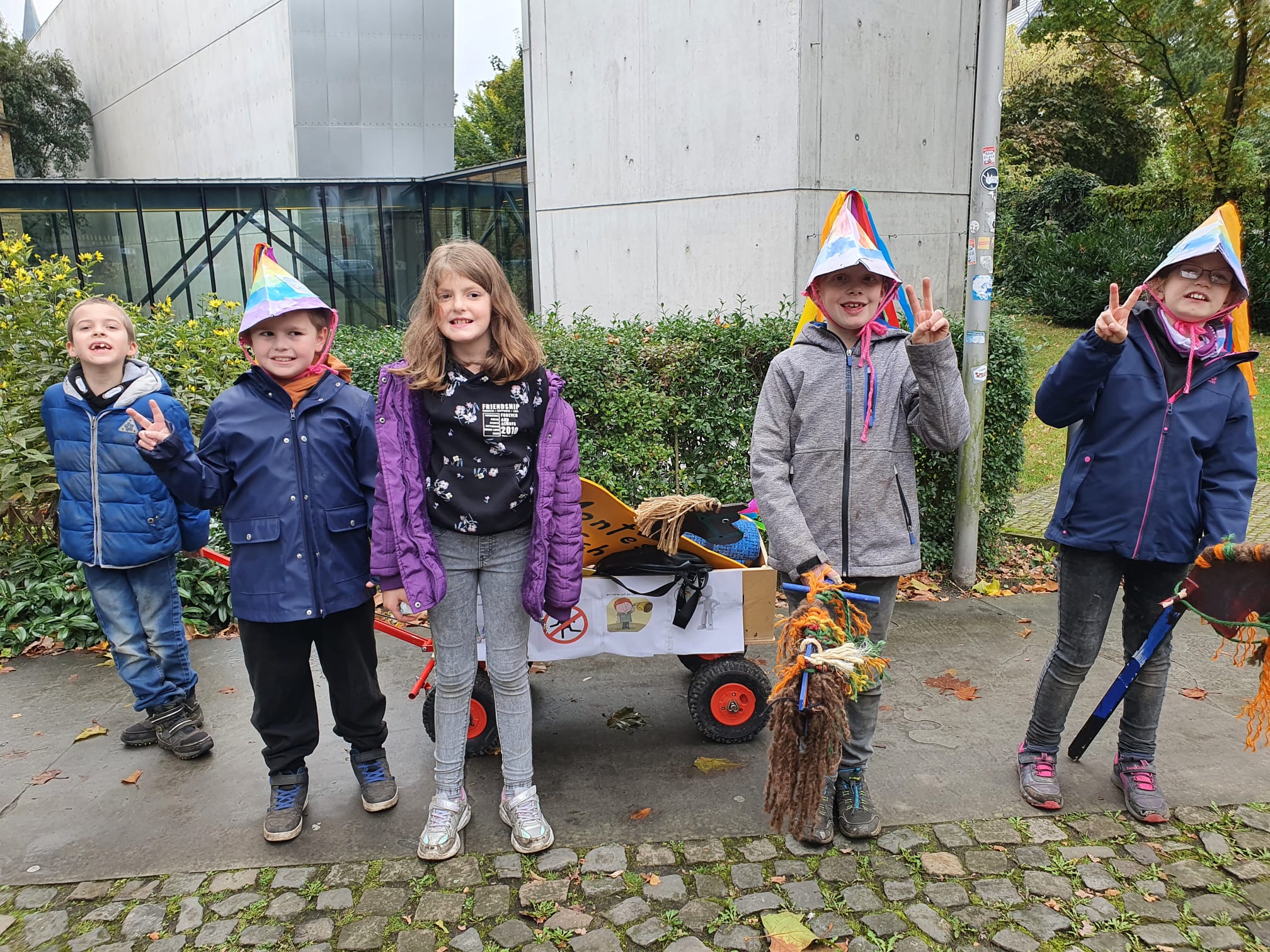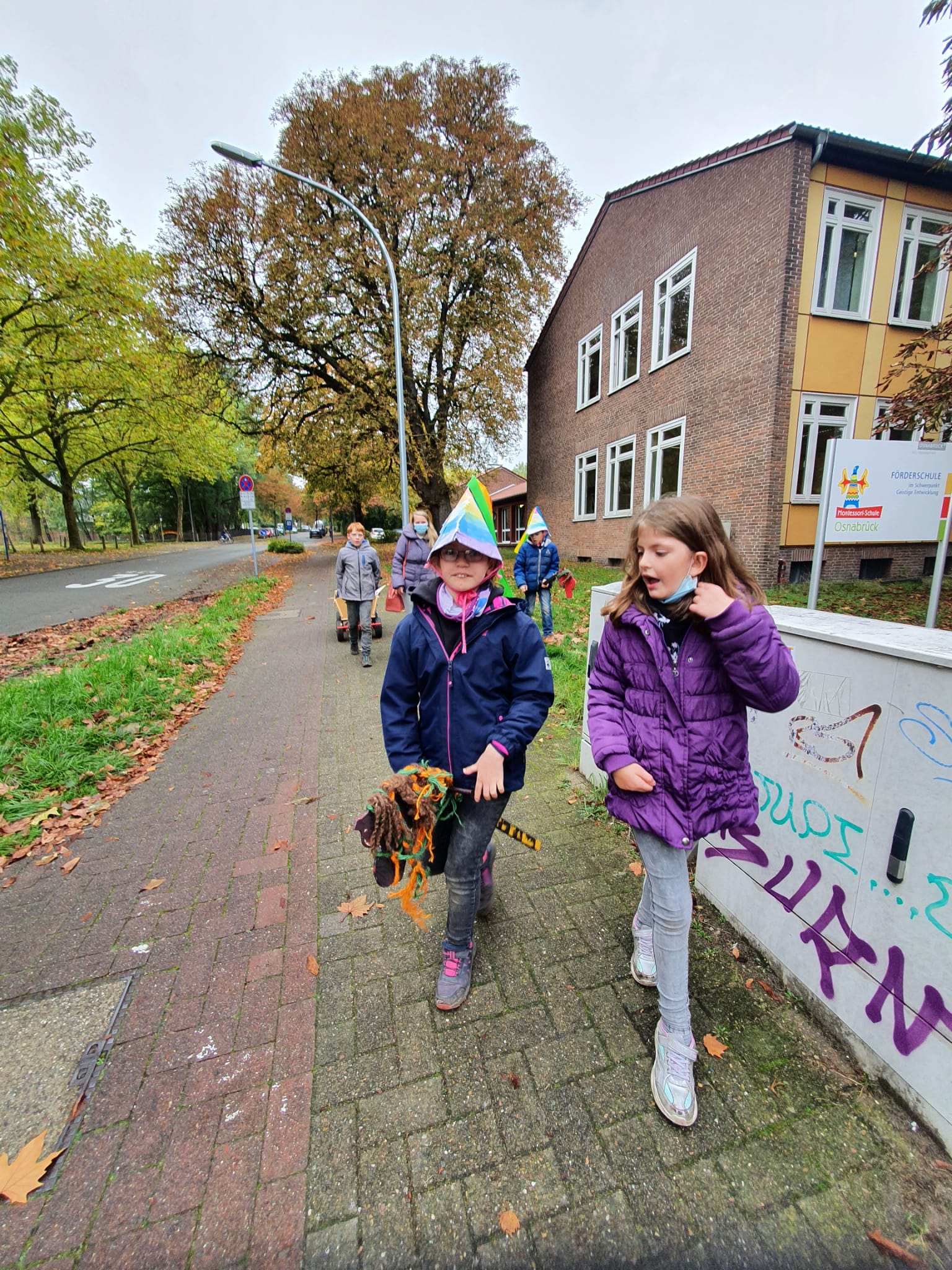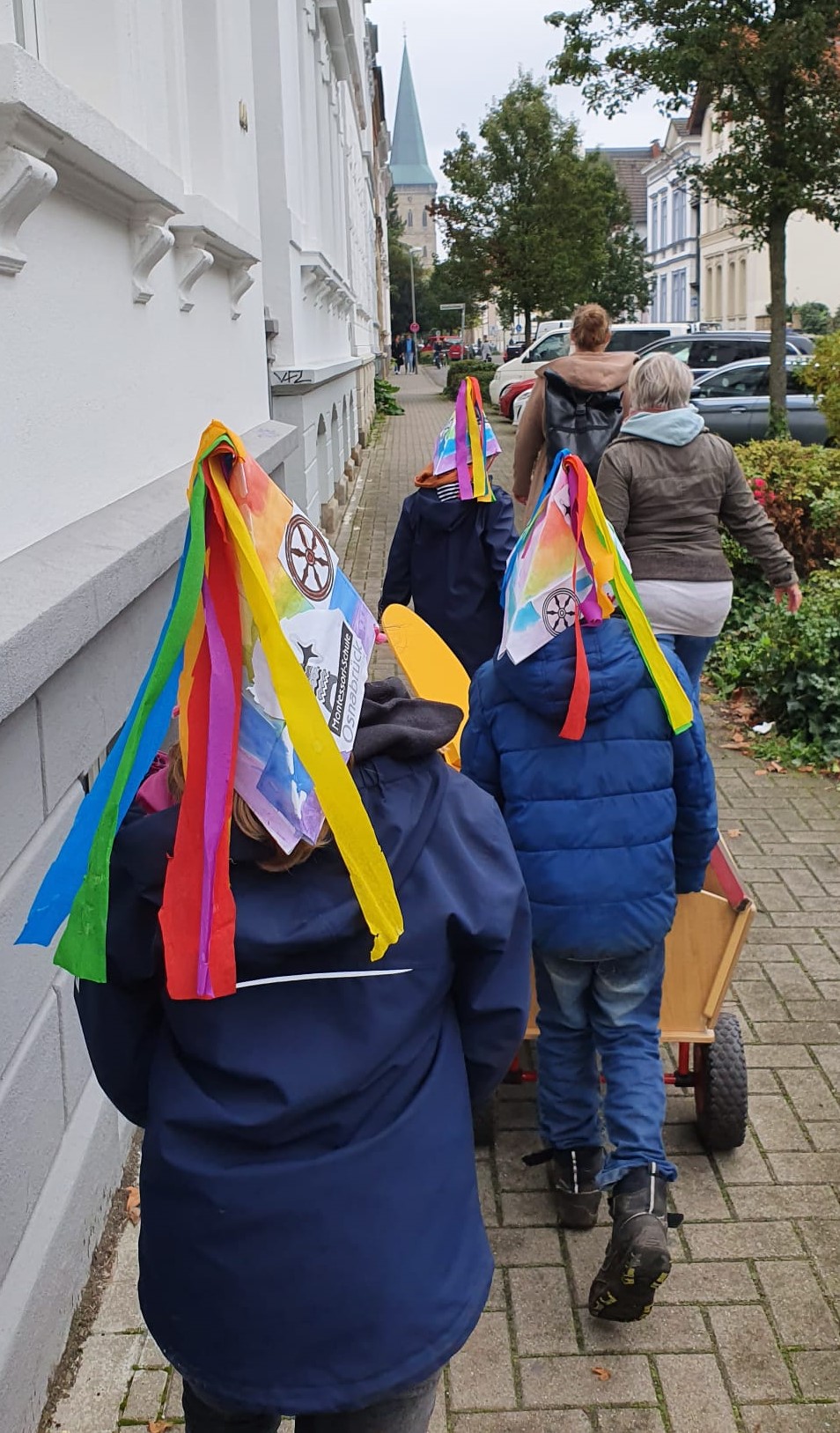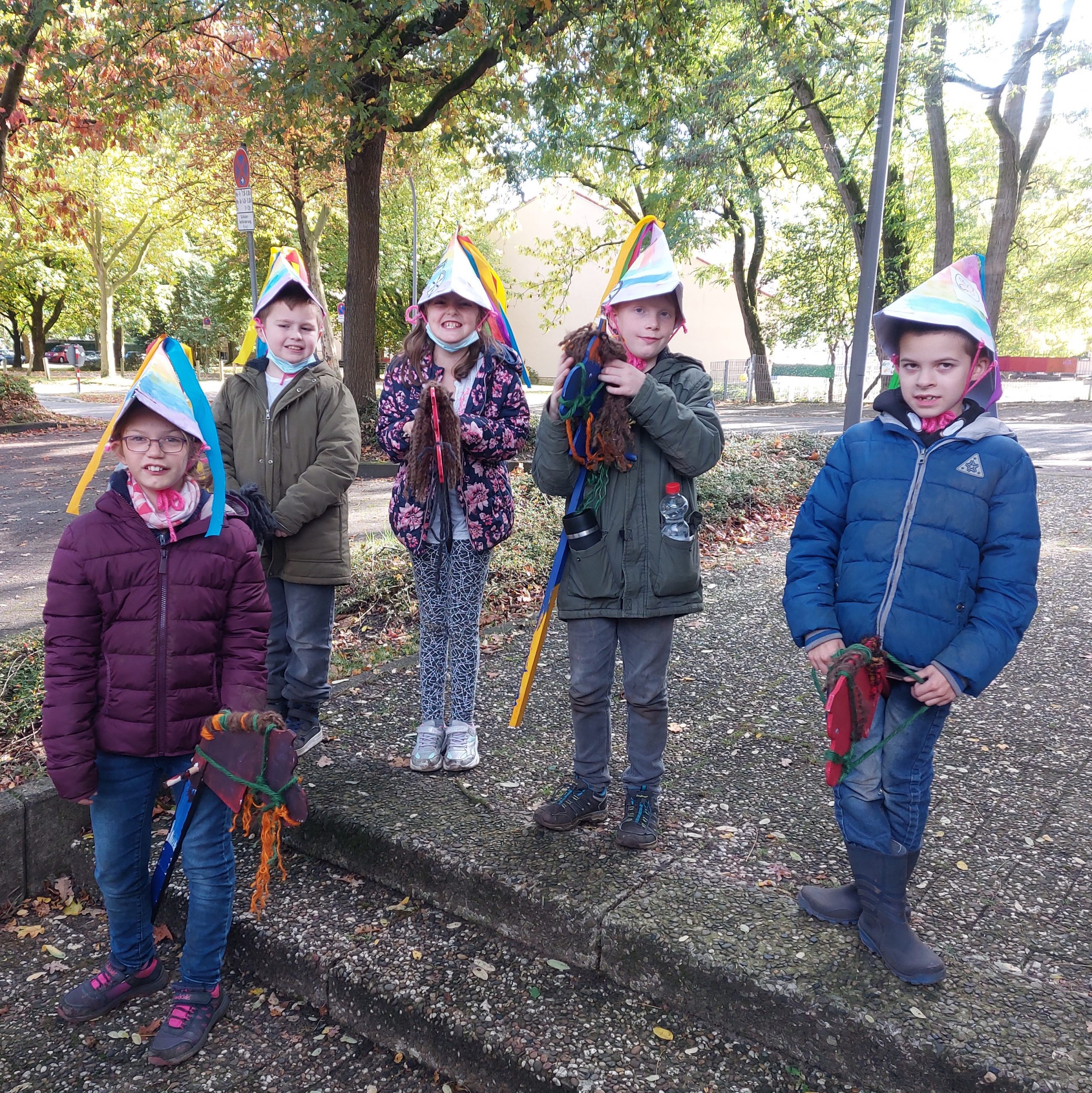 In den Wochen vor den Herbstferien haben wir uns auf das große Friedensfest vorbereitet. Wir haben viel über unsere Stadt Osnabrück gelernt und haben unsere Steckenpferde gestaltet und unsere Regenbogenhüte gebastelt.