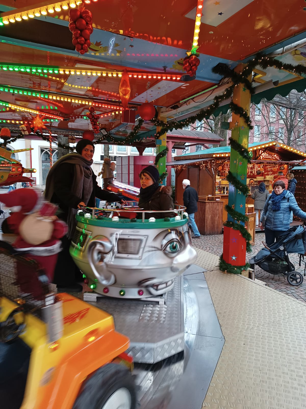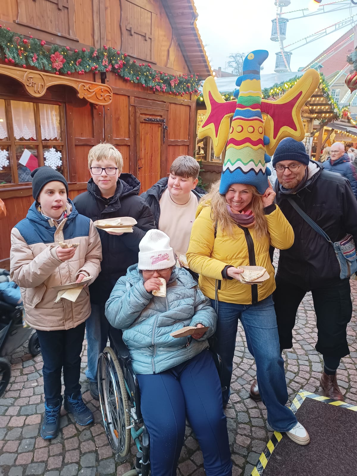 Zusammen mit den Schüler*innen der Klasse 7d besuchte Meilinda den Weihnachtsmarkt in Osnabrück. Dort durfte sie mit dem Riesenrad fahren und die mega Aussicht genießen. Außerdem konnte sie Pizza und Pommes essen! Meilinda war danach sehr kaputt, da der Fußweg sehr lang und anstrengend war. Zum Glück wurde sie auch zwischendurch getragen! Es war ein schöner Ausflug!