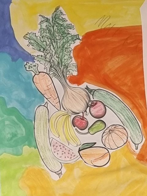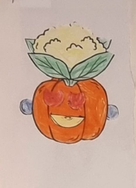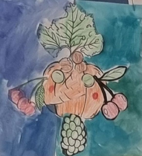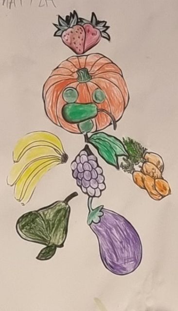 Stell dir vor: Ein Gesicht, bei dem die Nase eine Karotte ist, die Augen aus Kirschen bestehen und der Bart aus Trauben.