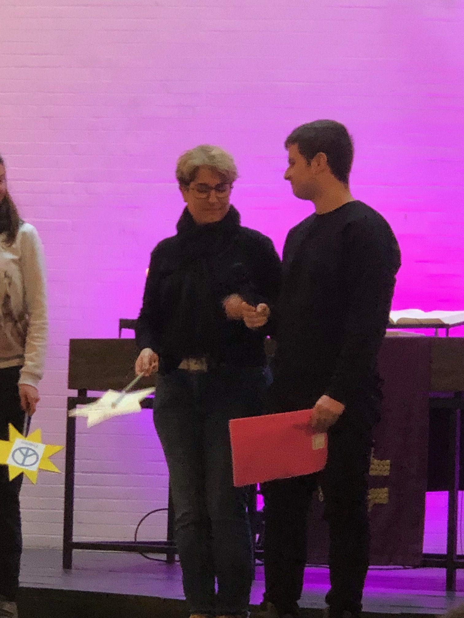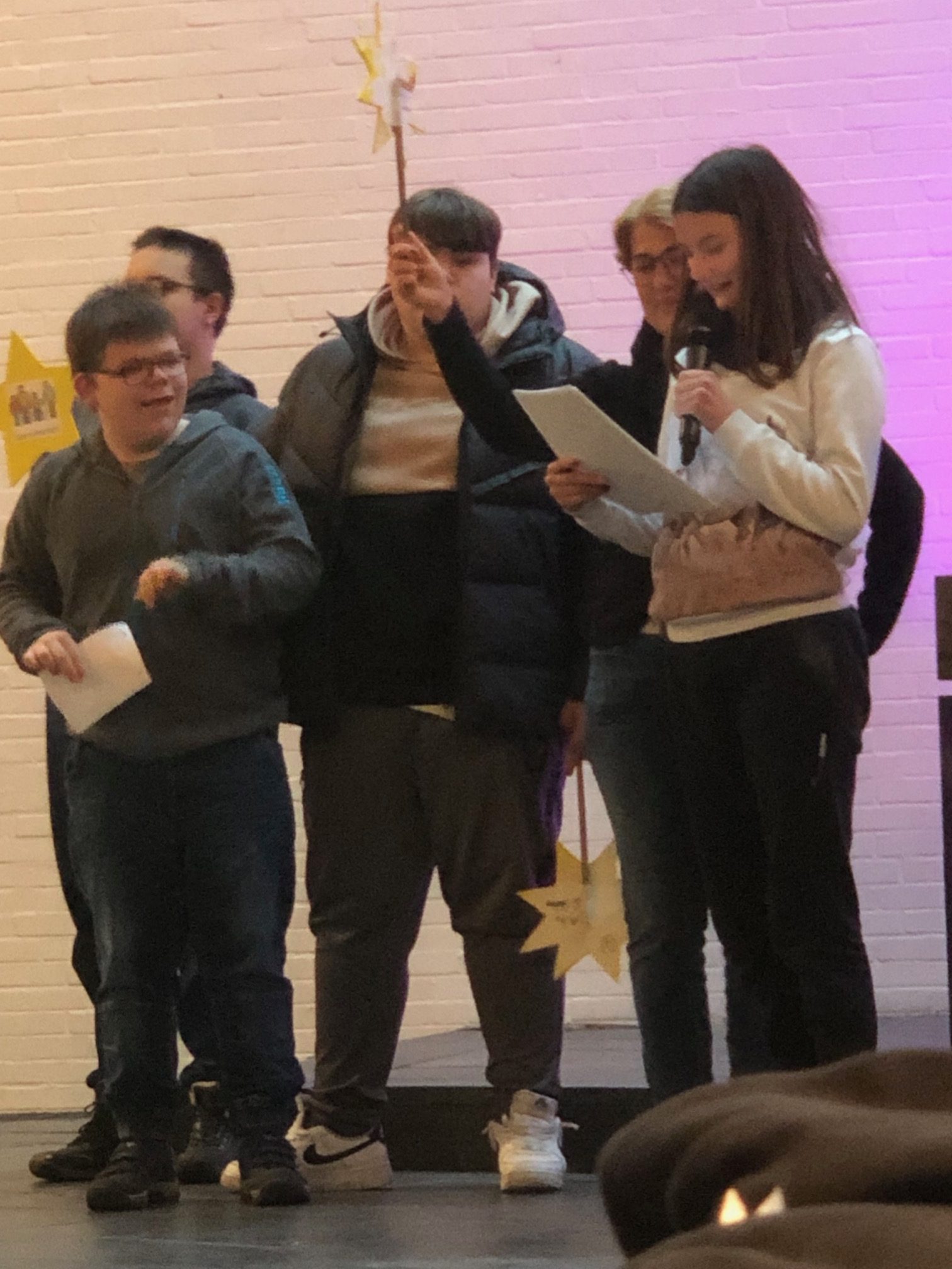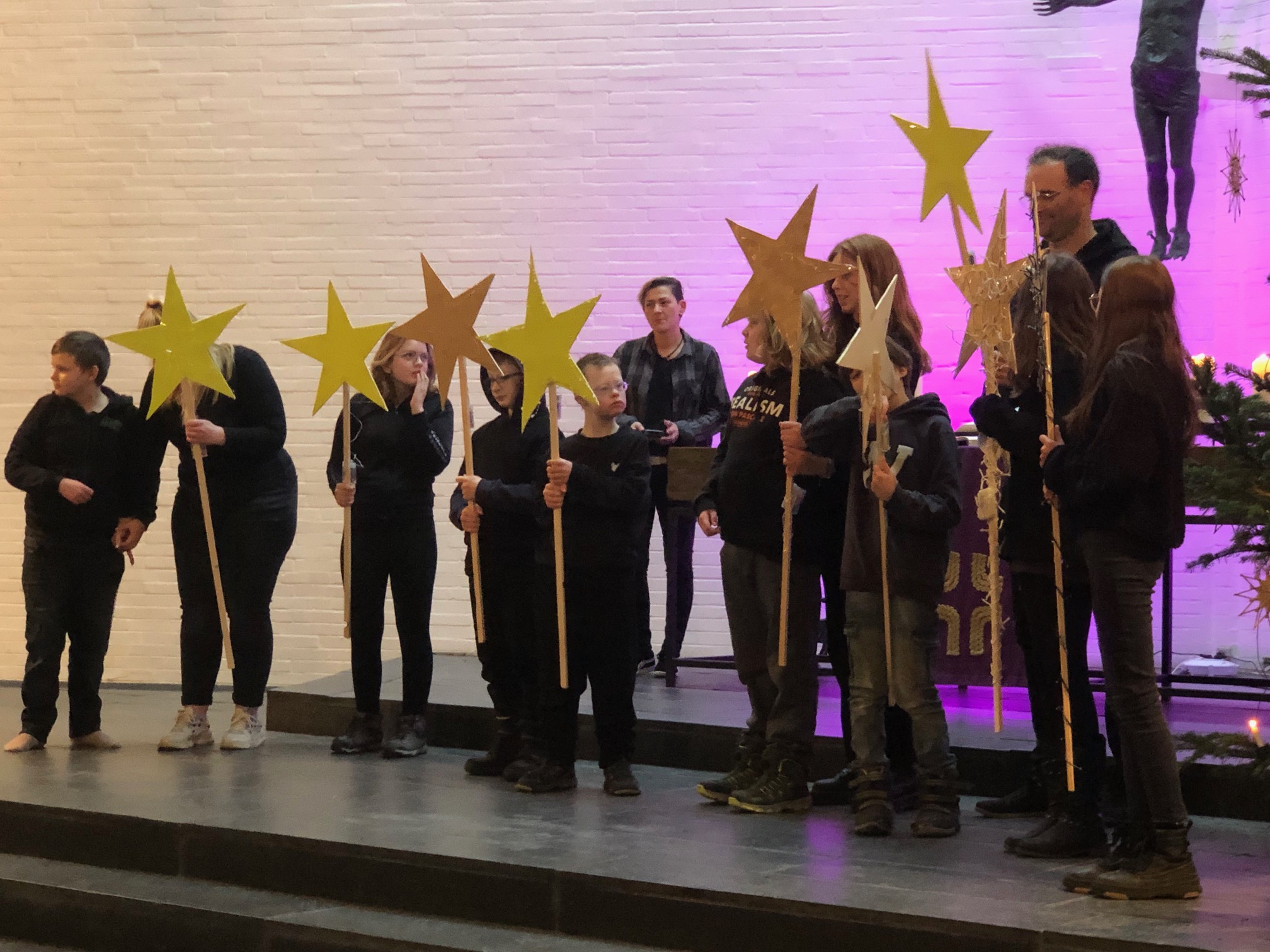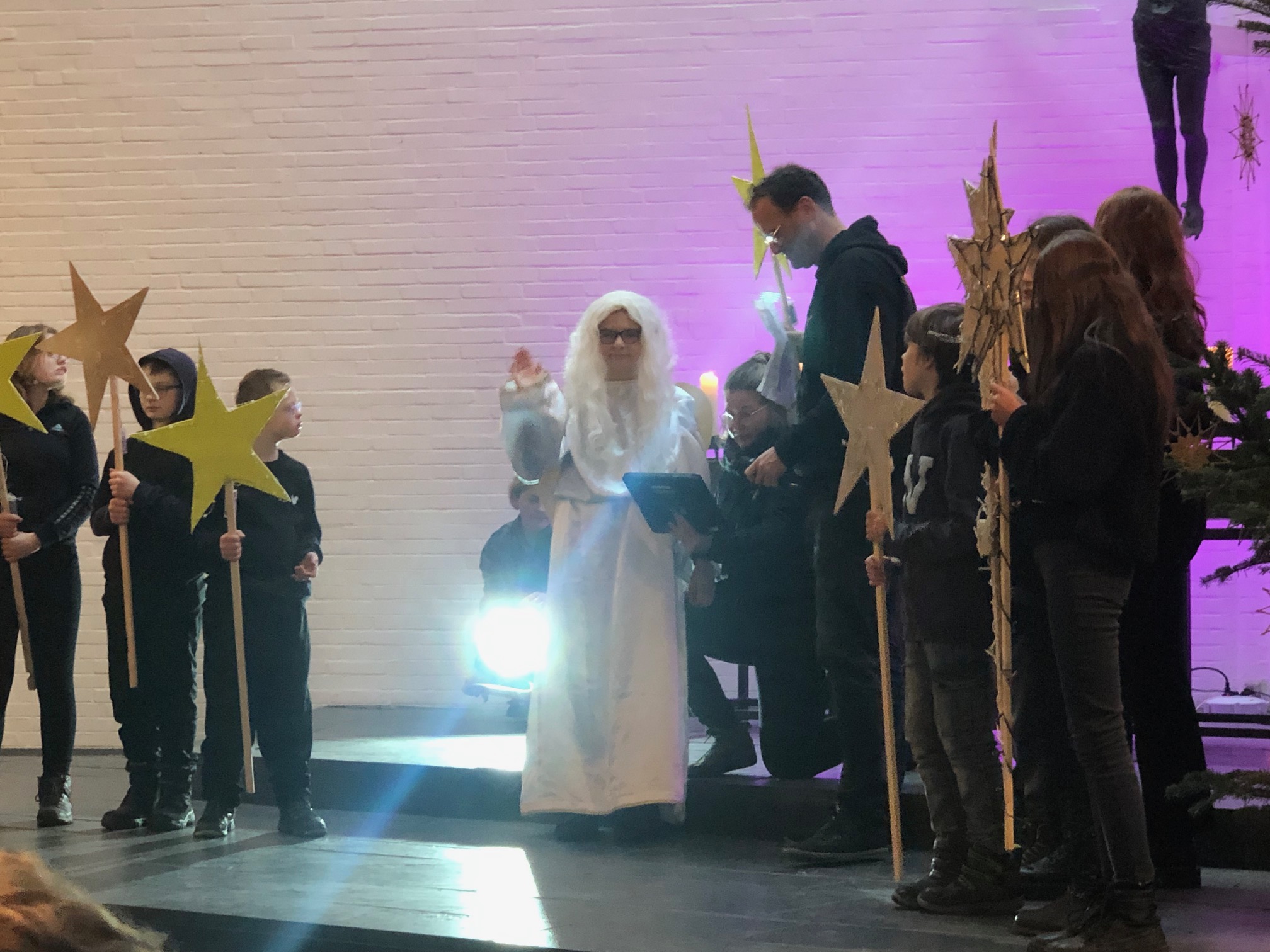 Gute Tradition ist es an der Montessori-Schule den letzten Schultag im Jahr mit dem ökumenischen Weihnachtsgottesdienst zu beschließen. Frau Frühauf von der Elisabethgemeinde und Pastor Herzberg von der Bonnusgemeinde führten gemeinsam durch den Gottesdienst, der von Schülerinnen und Schülern sowie ihren Lehrkräften und pädagogischen Fachkräften gestaltet worden ist. Es war gleichzeitig stimmungsvoll und sehr lebhaft.