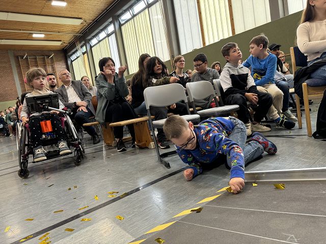 (Olaf Stein) Dem Wettergott sei Dank wurde die lange geplante Sportveranstaltung nicht abgesagt und wir erlebten ein insgesamt rundum gelungenes Event. Alle Schüler*innen hatten sichtlich viel Spaß und zeigten sportlichen Ehrgeiz. Auch das Spielfest bot attraktive Stationen.