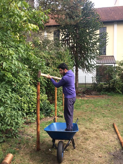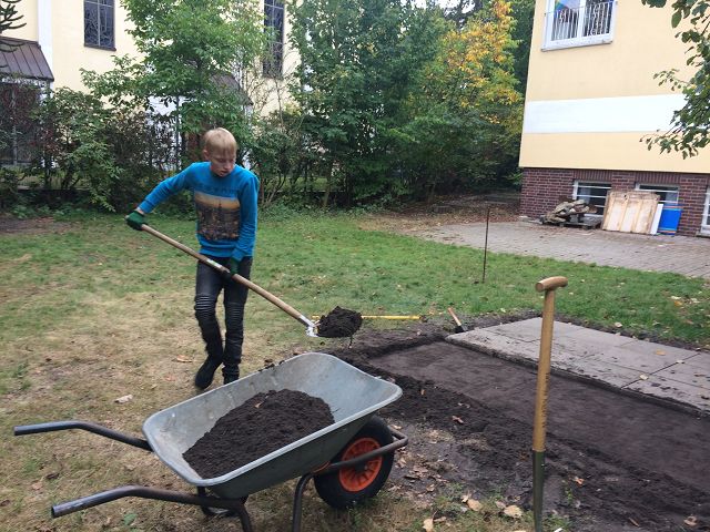 (Katja Woppowa) Unter Beteiligung verschiedener Schülergruppen wurde in einer mehrmonatigen Bauphase ein einfaches Gartenhaus zum tiergerechten Hühnerstall auf- und umgebaut sowie eine angrenzende Wiesenfläche eingezäunt und zu einem Auslauf umgestaltet.