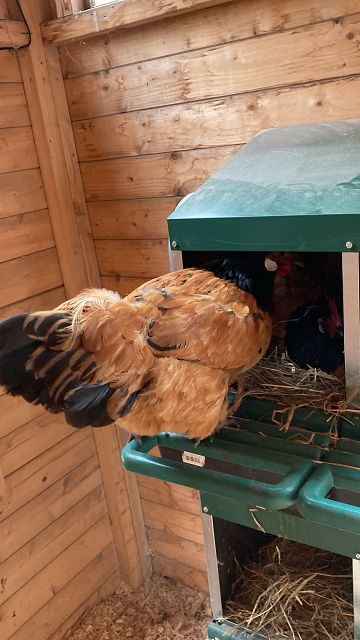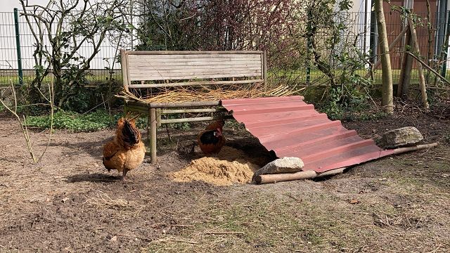 „Das Hühnergehege ist richtig groß mit einem Regendach.“