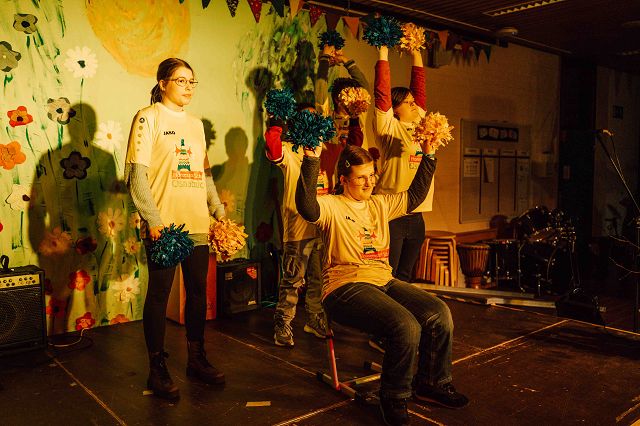 Die beiden Moderatorinnen Frau Berger-Neumann und Sophie, unsere Schülersprecherin, führten durch ein umfangreiches Programm. Die Allstars der Hull-Foundation machten den Auftakt und heizten nach einem temporeichen HipHop-Tanz das ganze Publikum mit einem Flashmob kräftig ein.