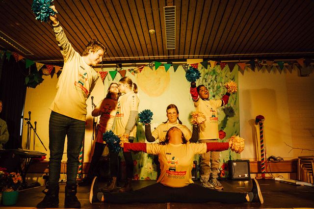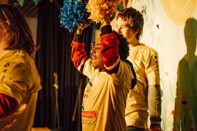 Der Schulchor, die Klasse 7a und die Cheerleader bestimmten anschließend das Programm bis zur Pause. Nach einer ordentlichen Kräftigung mit allerlei Getränken ging es dann weiter mi der Schulband und den Gästen vom Gymnasium in der Wüste.