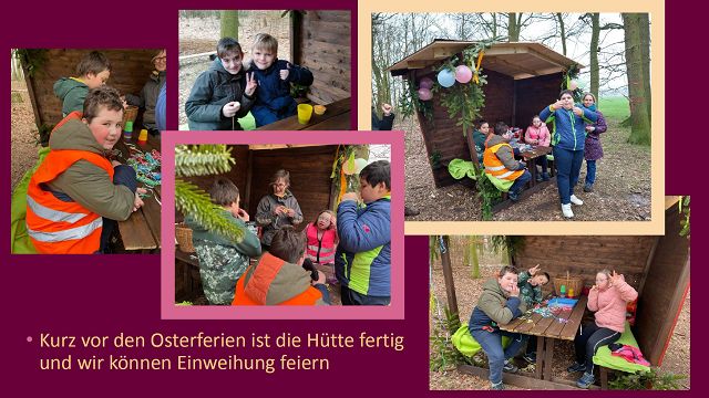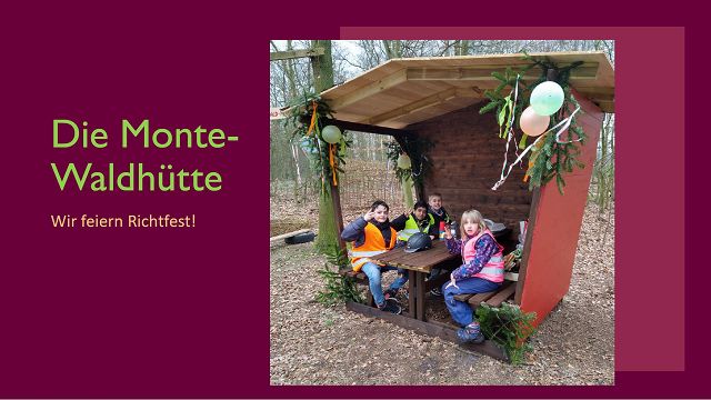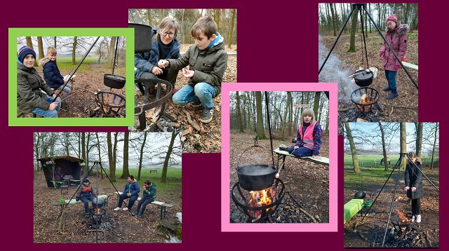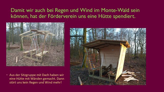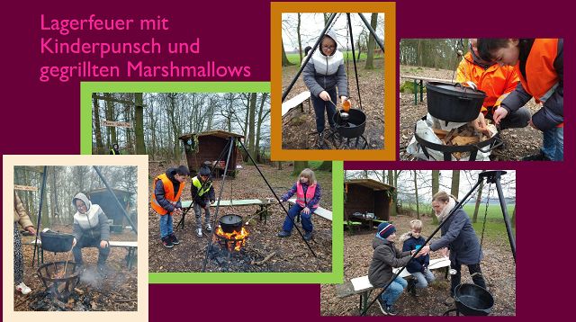 (Karin Bludau) Die Sitzgruppe – unsere “Monte-Waldhütte” – ist endlich aufgebaut und wir haben sie diese Woche mit Kinderpunsch über dem Feuer, gegrillten Marshmallows und ganz viel Spaß eingeweiht.