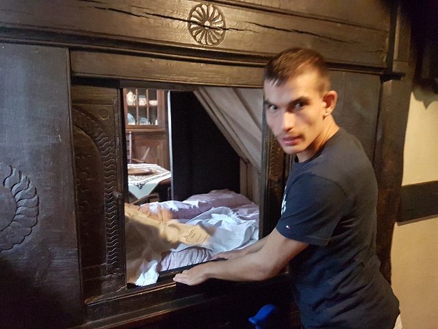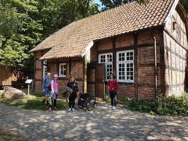 Die Klasse 12a beschäftigt sich mit dem Thema Wohnen. Deshalb haben wir uns im Mühlenhof-Freilichtmuseum in Münster darüber informiert, wie die Menschen früher gelebt und gewohnt haben. Die Betten waren ganz schön klein früher. Im Winter war es sicher ziemlich kalt ohne Heizung, nur mit Feuer. Strom gab es auch nicht, die Bügeleisen mussten auf dem Feuer heiß gemacht werden. Und die Schulbänke waren ganz schön unbequem. (Die Klasse 12a)