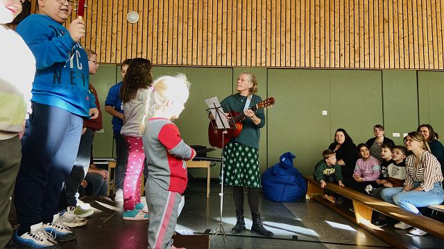 In der Schule wurden die Neuankömmlinge von 3 Klassen dann in der Aula von den Zweitklässlern begrüßt.