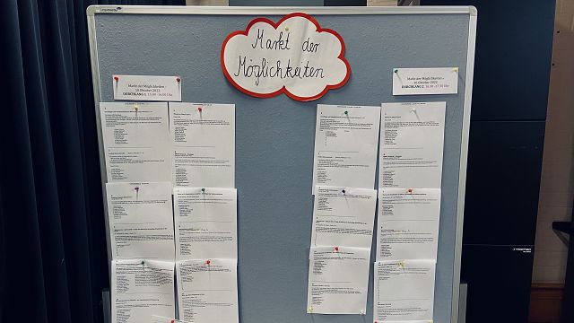 (Uwe Diersmann) In dem jährlichen schulinternen Fortbildungsangebot „Markt der Möglichkeiten“ nahmen am Montag nach dem Unterricht alle Mitarbeiterinnen und Mitarbeiter der Montessori-Schule unter dem Motto „aus der Praxis für die Praxis“ an breiten, praxisnahen Angeboten von „Grundlagen und Arbeitssicherheit im Werkraum“ über „Stimme im Alltag“ bis hin zur „Mensch-Pferd-Kommunikation“ teil. Daraus resultierende Anregungen und erworbene Kompetenzen werden dabei für die eigene Arbeit mit Schülerinnen und Schülern methodisch angepasst und umgesetzt.